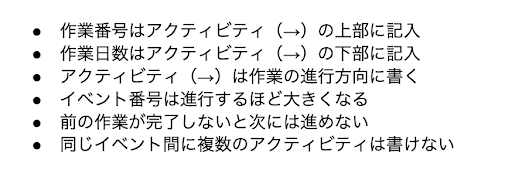 ネットワーク工程表の作成ルールは、以下の画像のとおりです。