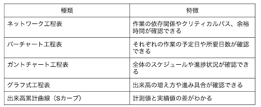 それぞれの工程表の特徴は、以下の画像のとおりです。