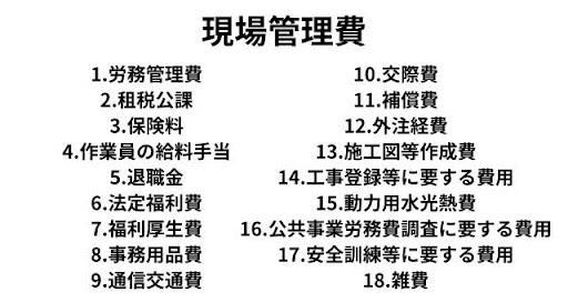直接工事に関係する費用ではありませんが、現場の維持管理に必要な経費が含まれています。