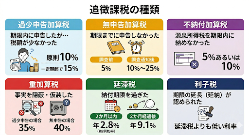 「正しく申告・納税していれば払わなくて済んだお金」であり、本来の税金(本税)に加えて、利息にあたる「延滞税」やペナルティにあたる「加算税」が上乗せされます。